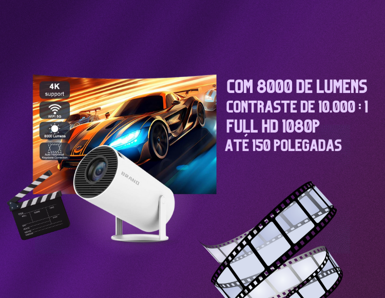 MINI PROJETOR PORTÁTIL 4K – compacto, moderno e cheio de recursos para turbinar sua diversão.